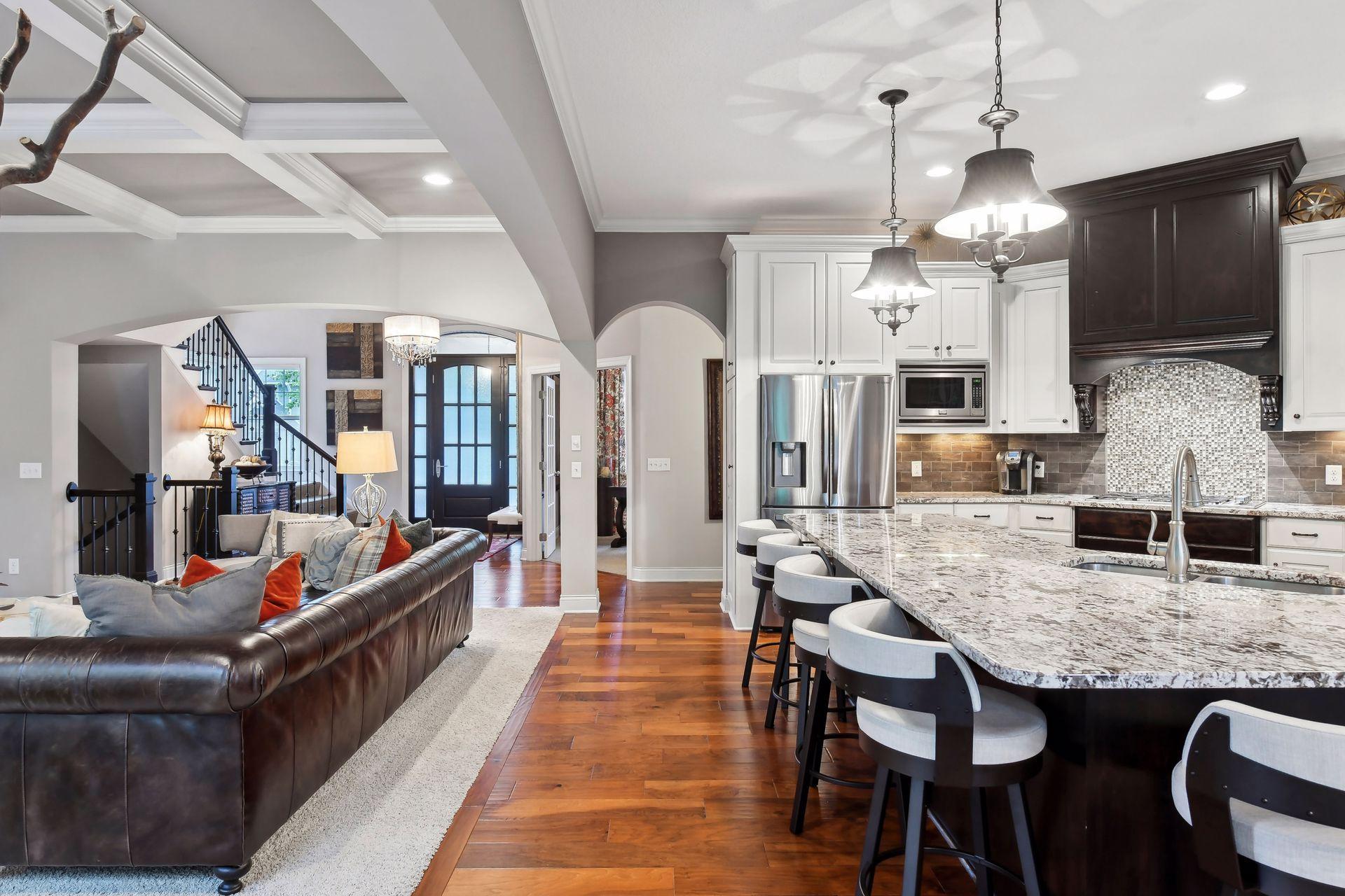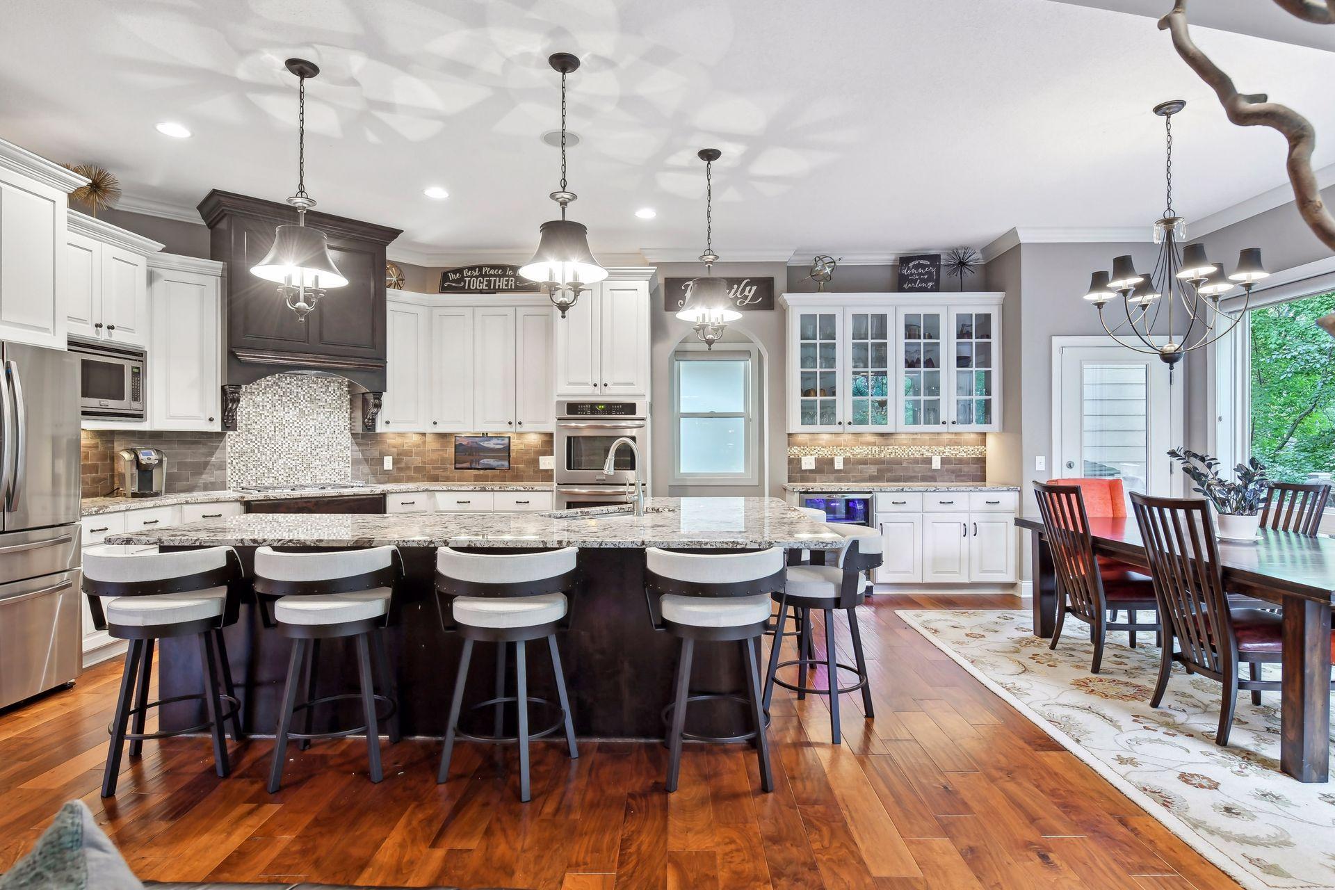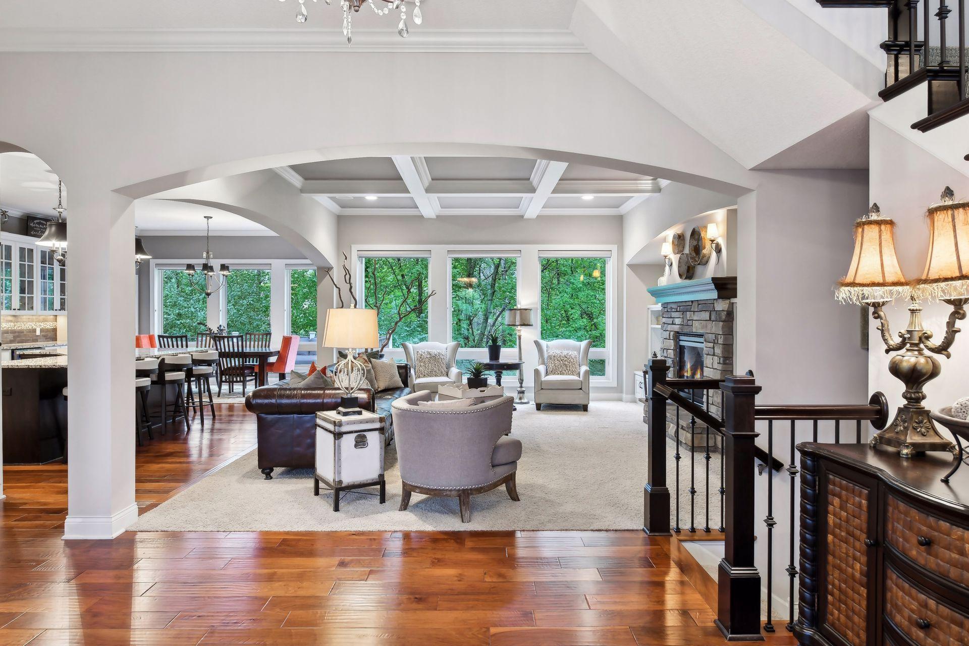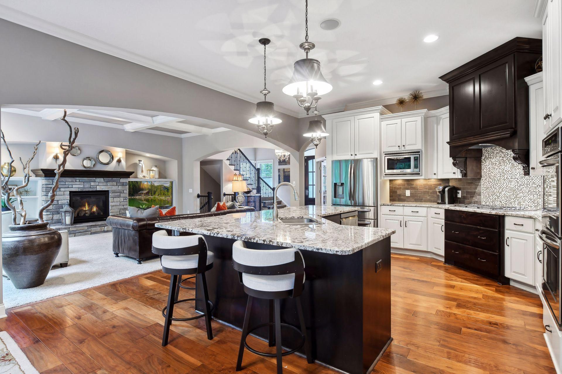 Discover refined luxury in this exceptional Gonyea custom-built home, ideally located in the prestigious Taylor Creek neighborhood within the highly sought-after Wayzata School District. Thoughtfully designed for both everyday living and entertaining, this residence offers an impressive blend of elegance, comfort, and modern convenience. The gourmet kitchen is a true centerpiece, featuring a spacious center island, granite countertops, beverage refrigerator, and a generous walk-in pantry. A dedicated technology hub keeps daily life organized and connected, while the open layout flows seamlessly into inviting living spaces. Designed with entertaining in mind, the lower level boasts a full wet bar, an indoor sport court and ample space for gatherings. Architectural details elevate the home throughout, including a coffered ceiling in the living room, custom window coverings and shutters, and built-in cabinetry. The luxurious primary suite serves as a private retreat, complete with a soaking tub, walk-in shower with heated tile floors, and expansive walk-in closets. Additional accommodations include a Jack-and-Jill full bath, an upper-level ¾ ensuite, and a ¾ bath on the lower level, offering comfort and convenience for family and guests alike. The extra-deep, three-car heated garage, offering ample space for vehicles, storage, and workshop potential while ensuring comfort during Minnesota winters. Additional highlights include a versatile flex room, gas fireplaces on both the main and lower levels, and access to outstanding community amenities such as a neighborhood pool and a nearby park just steps from your door.
