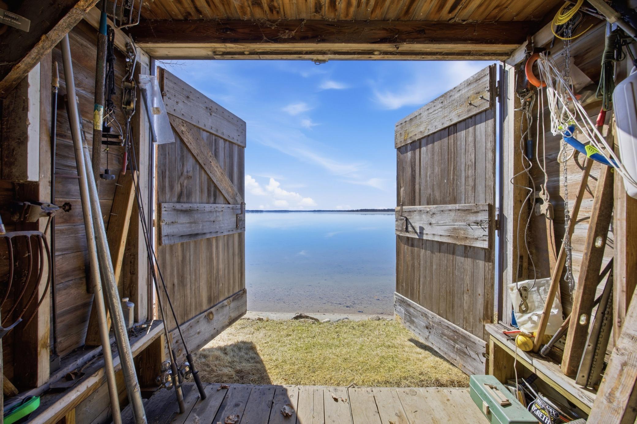 Once in a Lifetime Opportunity to own this wonderful 100' of Level East Shore Drive property on Big Detroit Lake with hard Sand Bottom. Amazing full lake view sunsets, Irreplaceable boathouse with upper sleeping quarters with side windows to catch the breeze and full view front window to catch the Moonlight nights glimmer off the water. 24 x 40 finished garage, The Cabin boasts a Stone Fireplace and Sun-drenched lake views. If you have been looking for the perfect spot to build your dream home, look no further, It is right here! Act and make it yours!