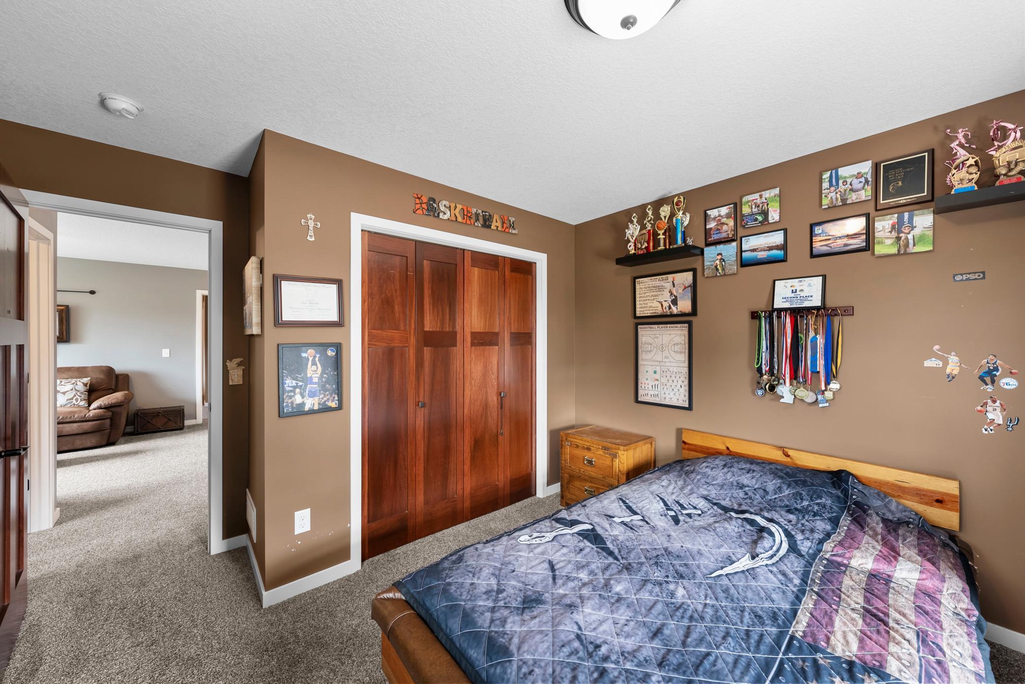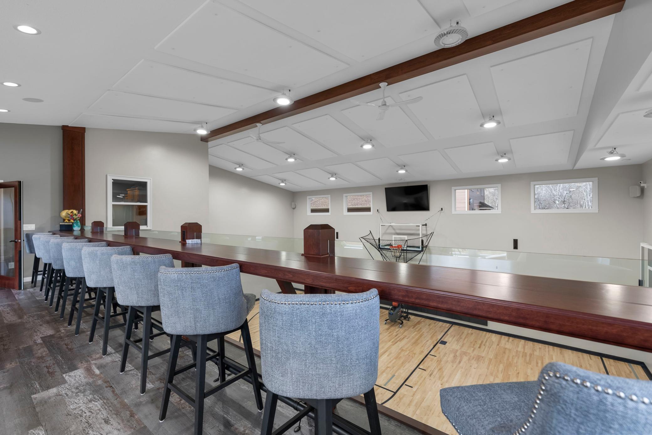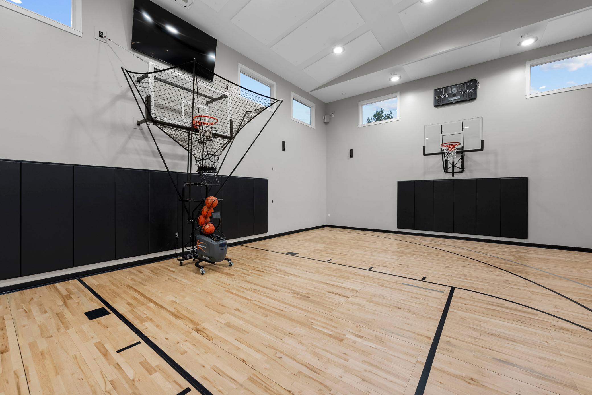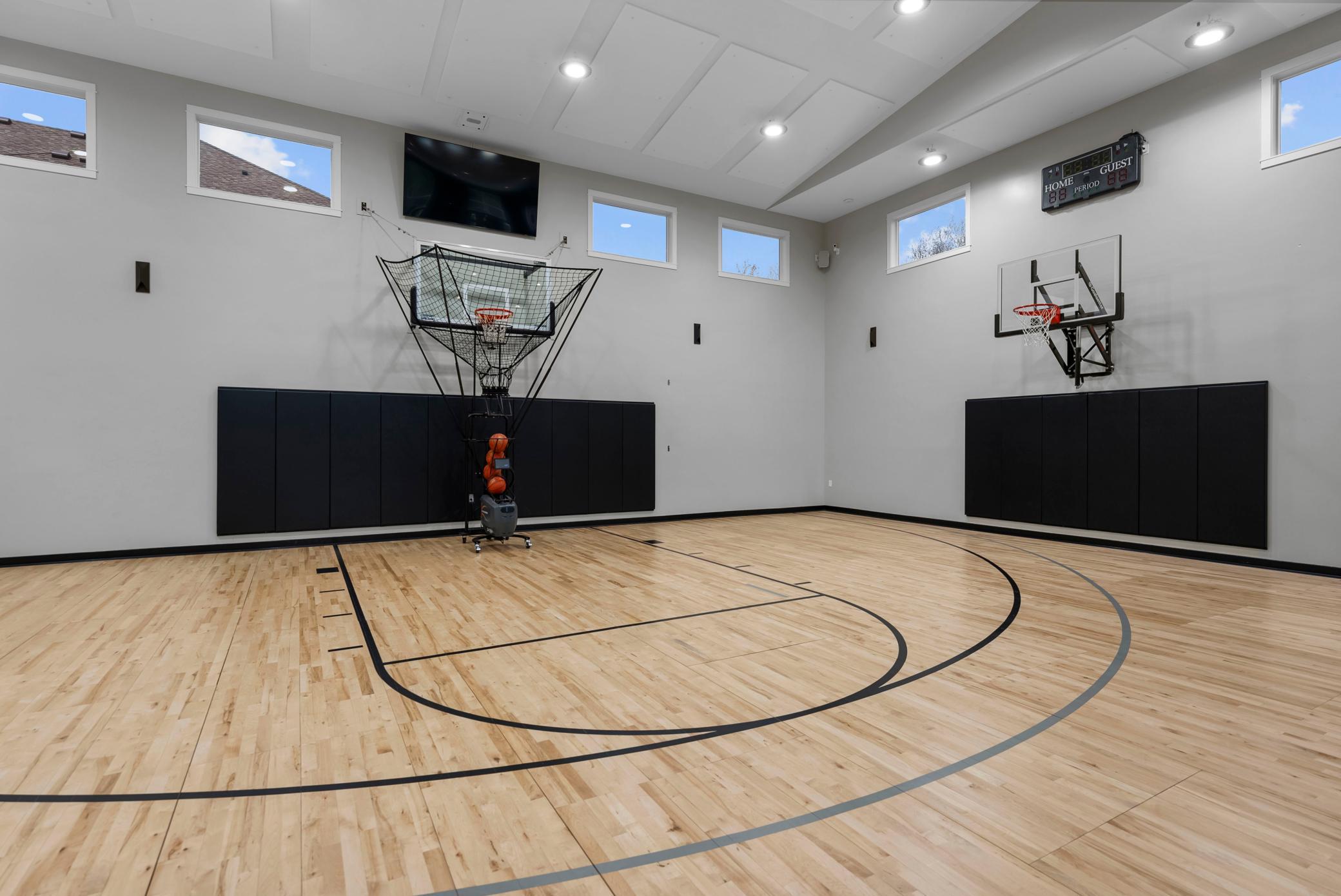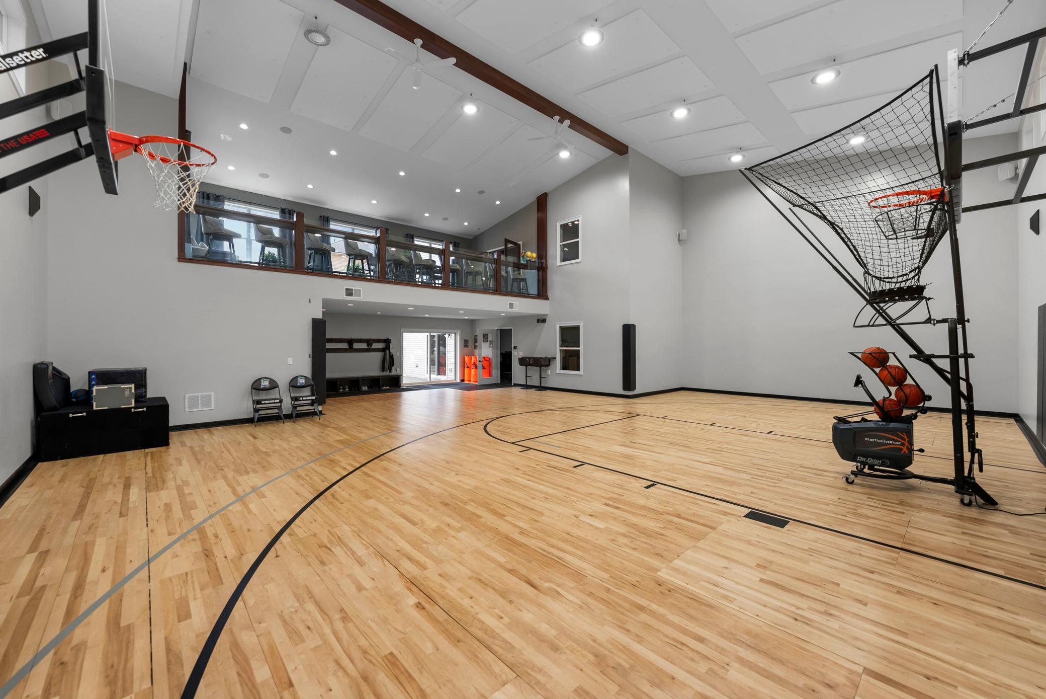 Experience ultimate luxury and unparalleled recreation in this stunning 5 bedroom 4 bath executive retreat. Designed for both sophisticated living and active lifestyles, this home boasts exquisite craftsmanship throughout, including rich cherry built-ins, gleaming Brazilian cherry wood floors, and a gourmet kitchen featuring custom rustic hickory cabinetry with honed granite countertops. The primary suite serves as a true sanctuary, featuring a massive walk-in closet and a spa-like en-suite complete with heated floors for year-round comfort. The lower level is an entertainer's dream, featuring a finished basement with heated floors, a custom wet bar and the potential for a 6th bedroom. The crown jewel of this property is the incredible 1,893 sq. ft. attached professional-grade basketball court - a rare find that sets this home apart. Practicality meets luxury in the 1,284 sq. ft. heated garage, which offers ample room for vehicles and additional storage. This is more than a home; it's a private lifestyle destination.